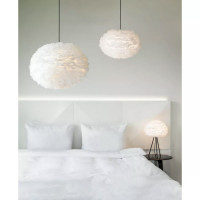 | Миниатюрный (всего 35 см в диаметре) абажур Eos воплощает в себе все главные ценности Umage. Плафон выполнен из натуральных гусиных перьев, каждое из которых аккуратно вручную приклеено к бумажному сердечнику. Лампа излучает уютный рассеянный свет, поэтому идеально подойдет для спальни, холла и любого помещения, где не нужен яркий свет. Производитель рекомендует чистить эту люстру феном. Легко устанавливается практически на любой держатель для лампы. Аксессуары для подключения и источник света в комплект не входят. | |