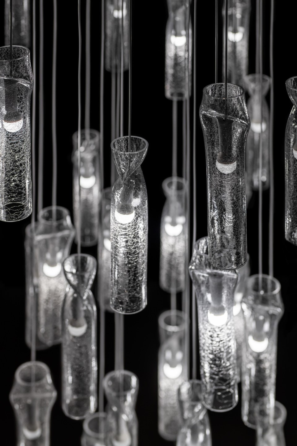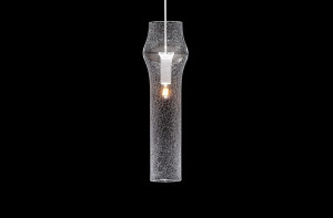 Подвесной светильник Lasvit Press Iced Clear из богемского стекла прозрачного цвета, арматура из металла белого цвета. Дизайн: Nendo, 2012.