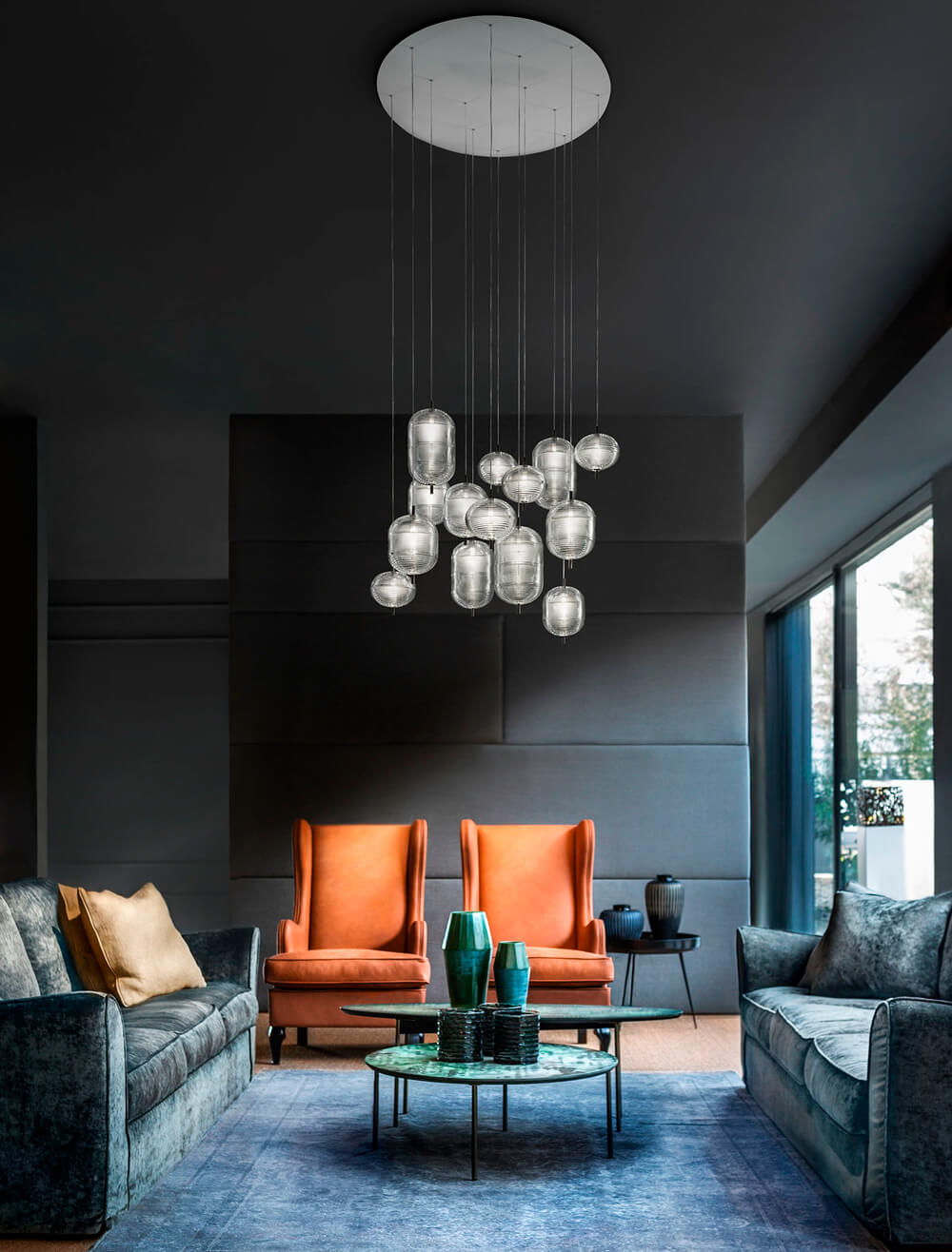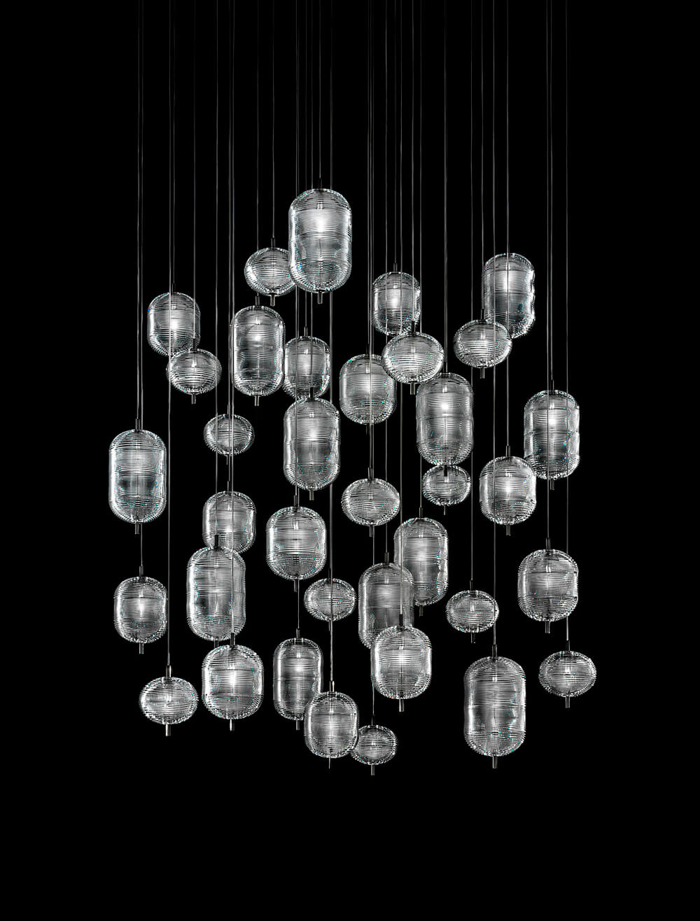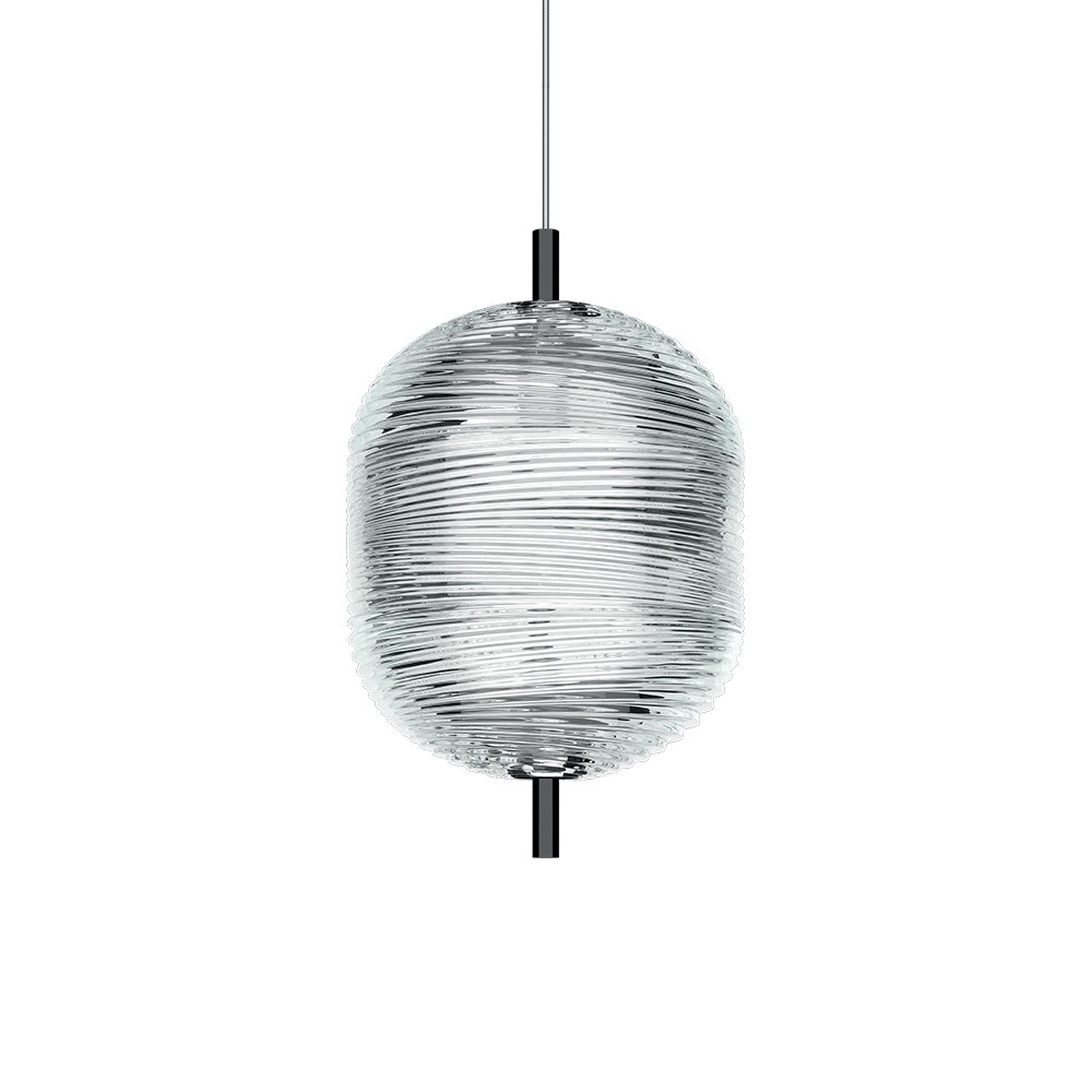 Подвесной светильник из коллекции Jefferson. Small состоит из двух хрустальных прозрачных диффузоров эллиптической формы и цилиндрических модулей, которые объединены на черном хромированном основании: кажется. что оно заставляет хрусталь вращаться как волчок. Длина подвеса регулируется до 400 см. Потолочное крепление не входит в комплект. Многочисленные потолочные крепления позволяют создавать композиции с бесконечным разнообразием вариантов, подходящих как для жилых, так и для общественных помещений, великолепно вписывающихся также в большие архитектурные объемы. Дизайн: Luca Nichetto, 2019.